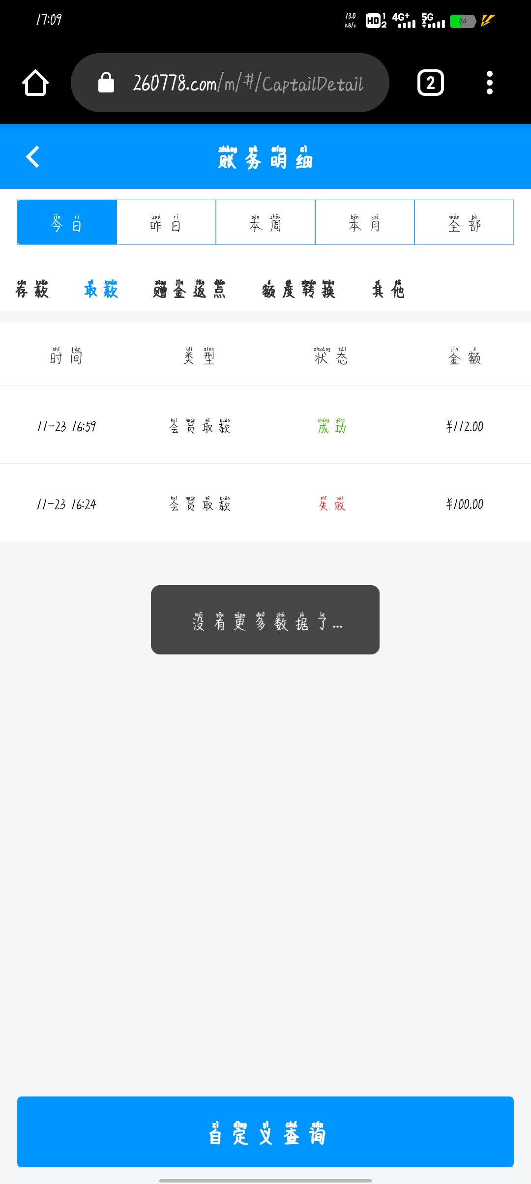 提了100 一个下午才到账