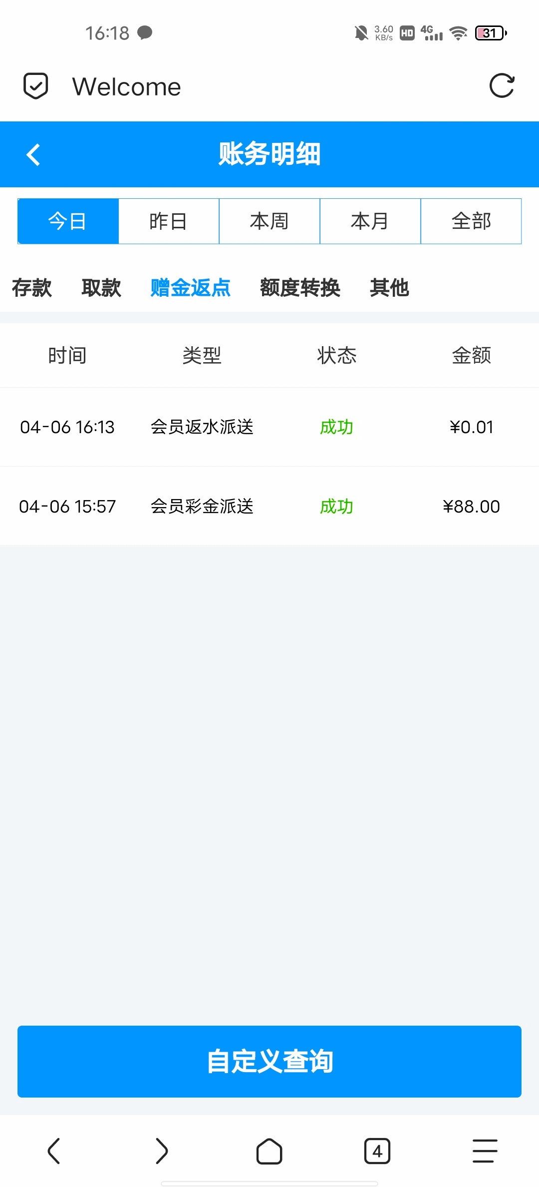 上个月送了88,提100让充了100,又打上了450提出来了