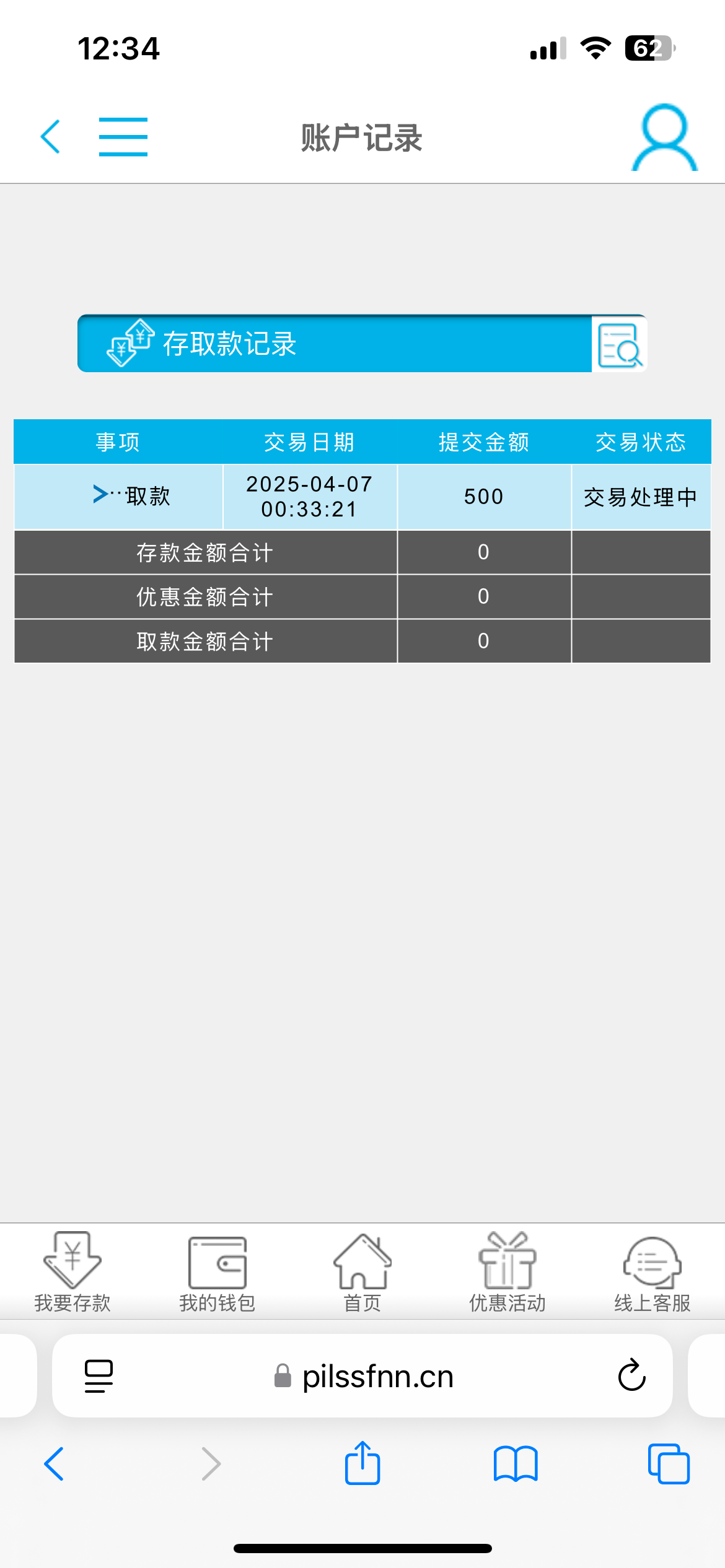 我还是抱有希望 目前输剩500看看你们能不能到账 到账了我就提