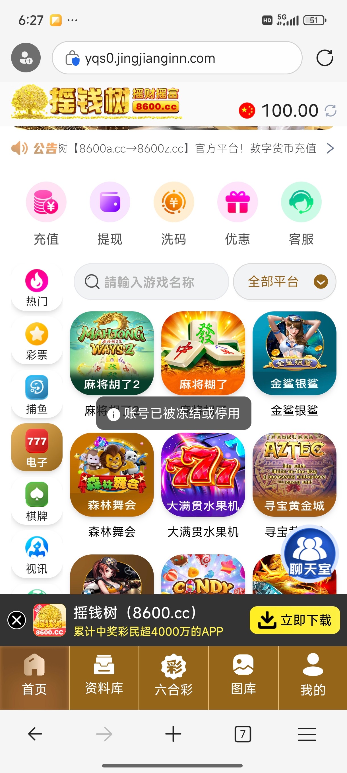 打到500准备提现显示用户冻结