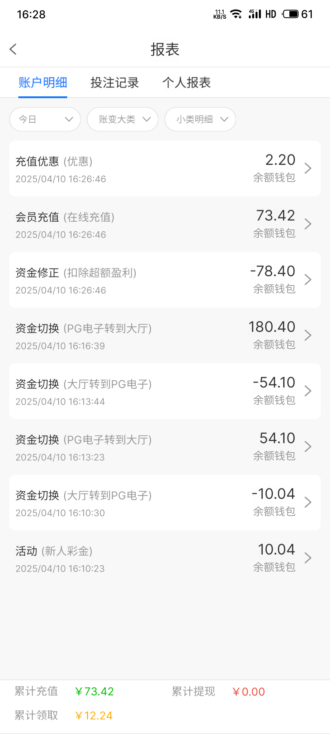 彩金最高提102    打上去的不要充值直接提一手再说     不然你冲最低50   冲完最高也就提102     要么你就领完彩金先充值再打 不然就是上面这样  我冲50提了 102到账了
