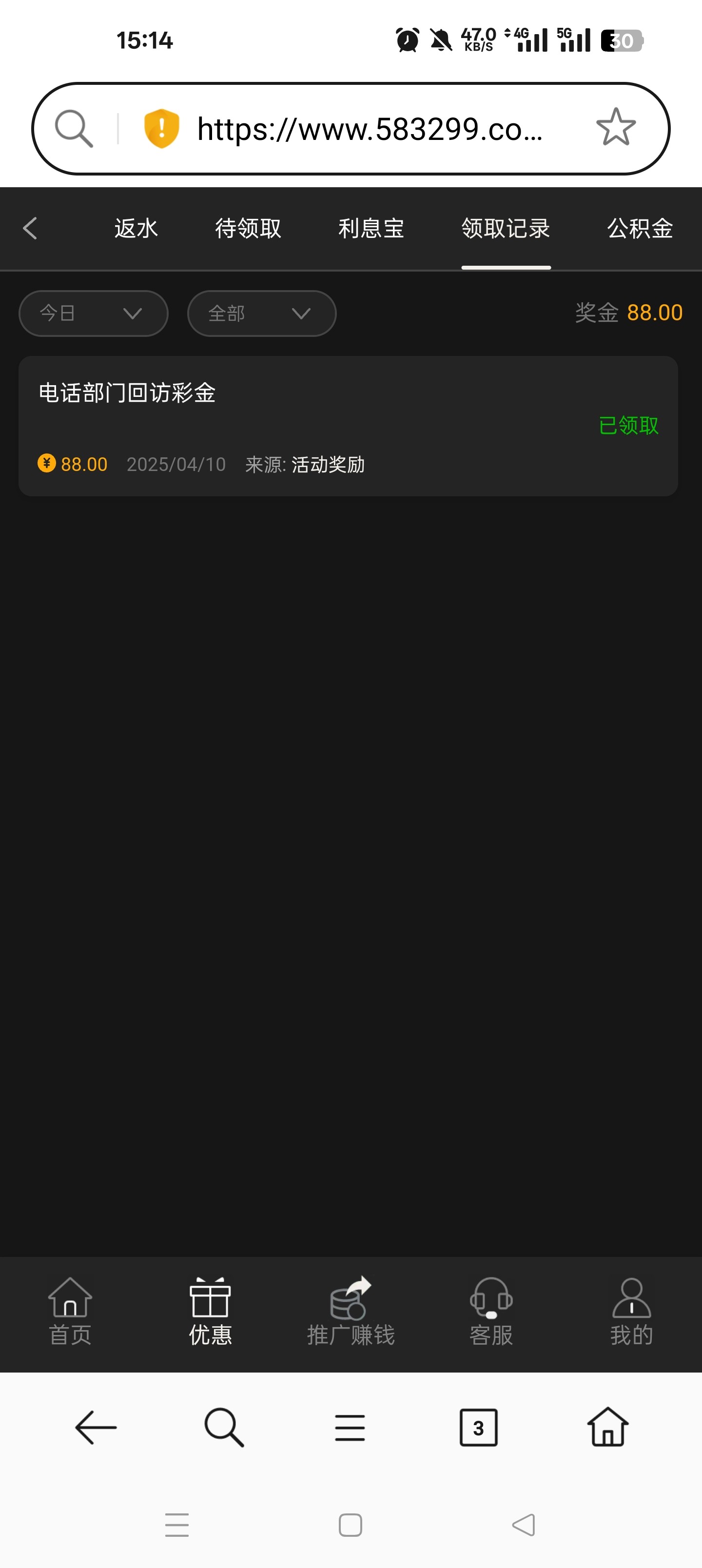纯坑了 存一百进去没有领取送一百的入口 客服系统直接崩溃状态进不去 裸打二百流水直接GG 现在推的台子都不让韭菜生长了 直接上来就隔