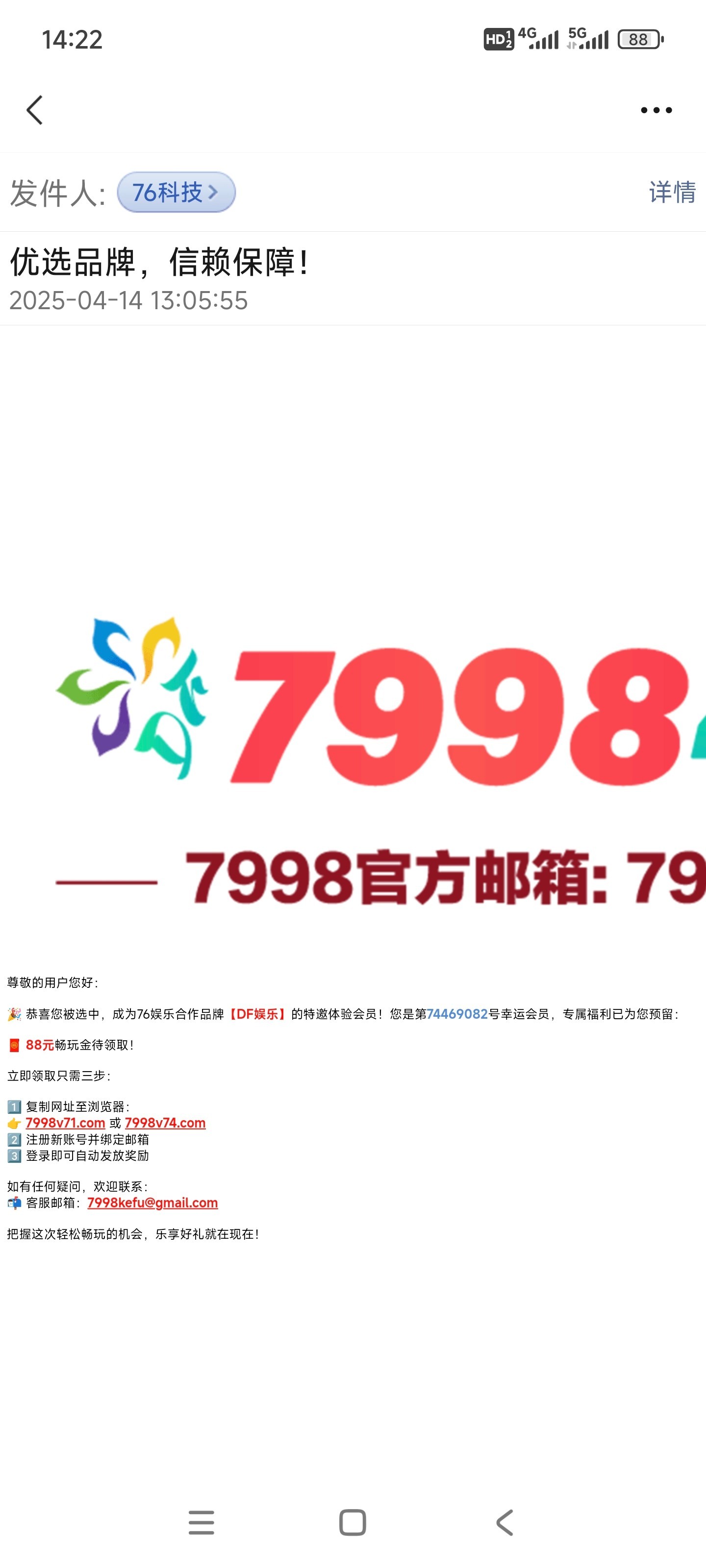 我昨天无聊翻了一下邮箱刚好看见有邮件,然后直接去注册新号玩了一会。这个系列台子貌似多号不影响出款,我300提的钱包差不多秒到账