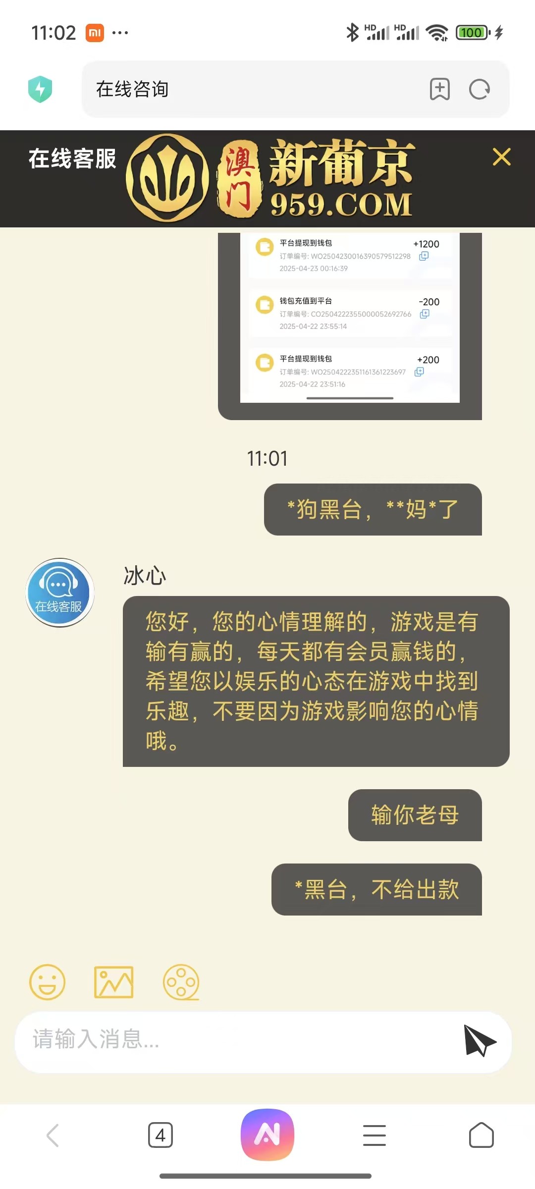 959纯黑逼充值100提575退本封号