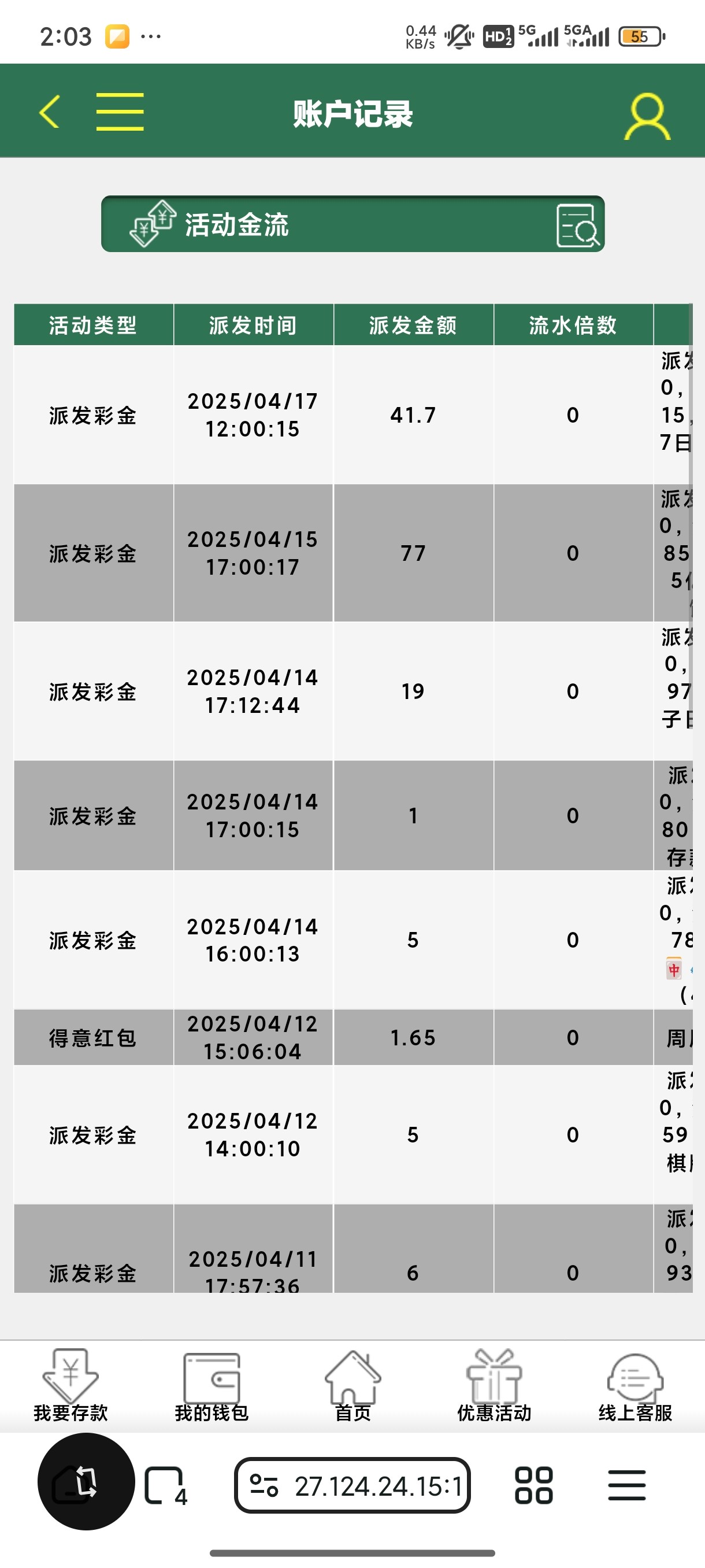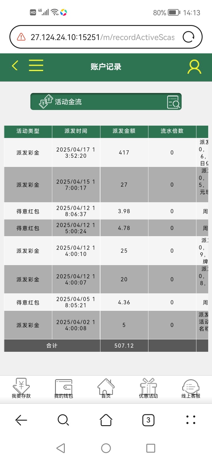 应该不会的,应该是彩金还没有送