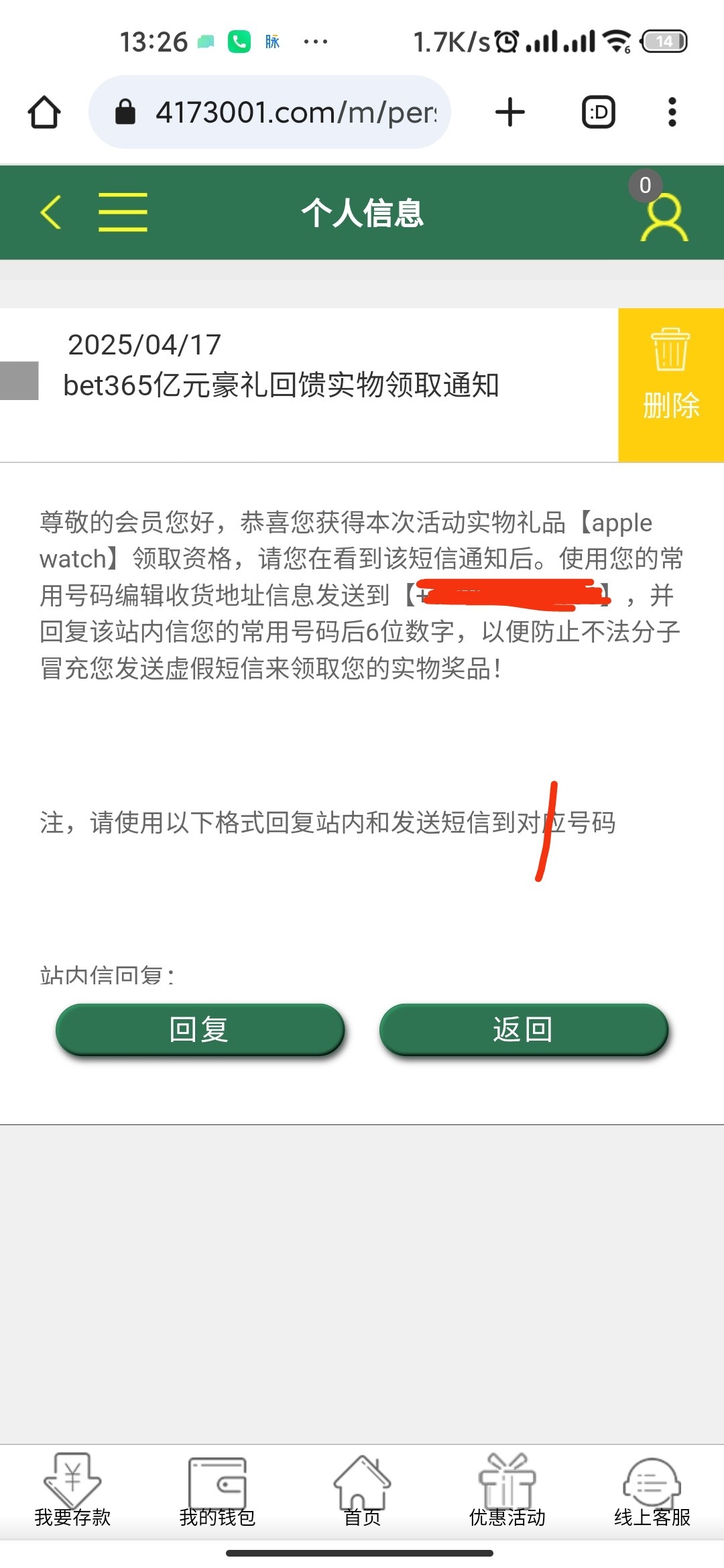 我看怎么有号都有手表送,不会是套信息的吧