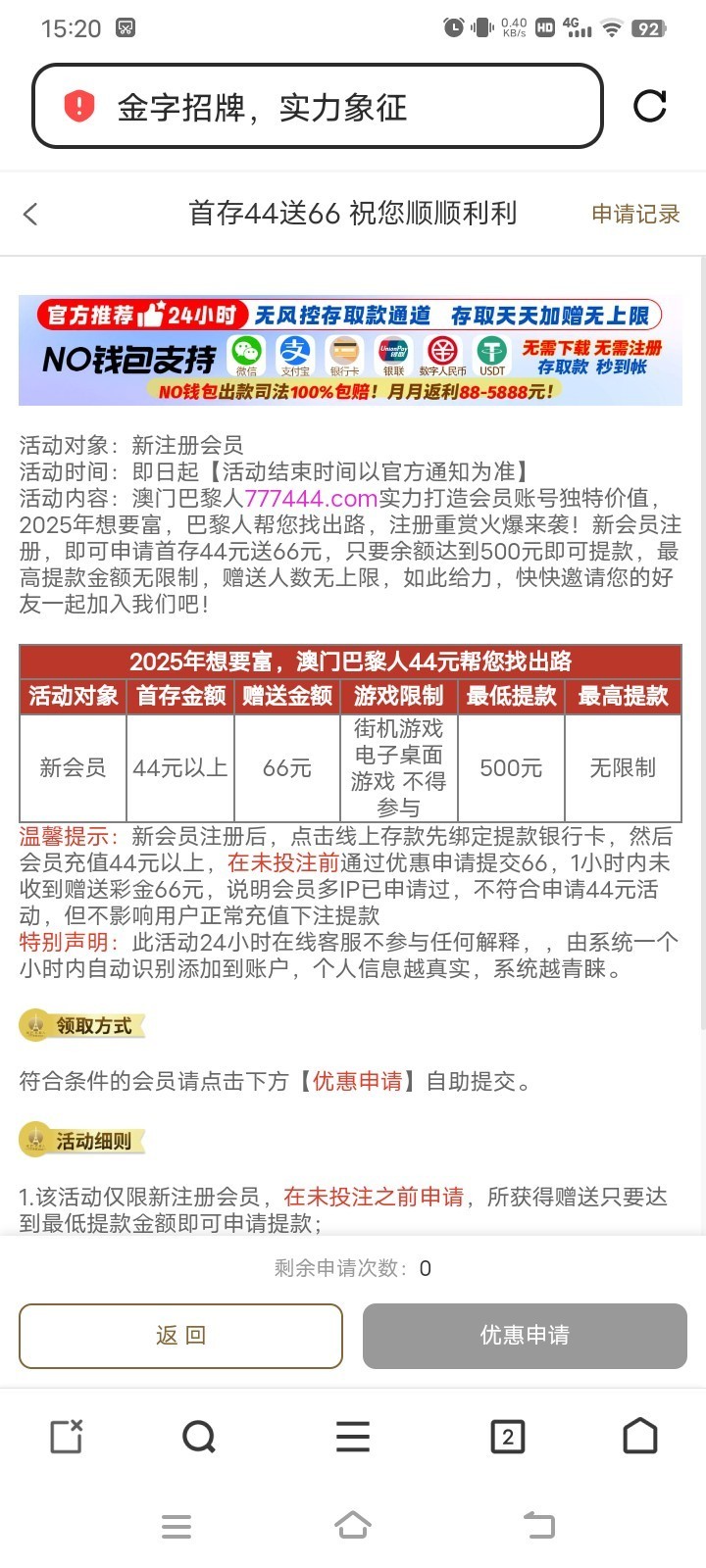 没打出来,充值了45申请了2个66,不知道黑不黑,自测吧。