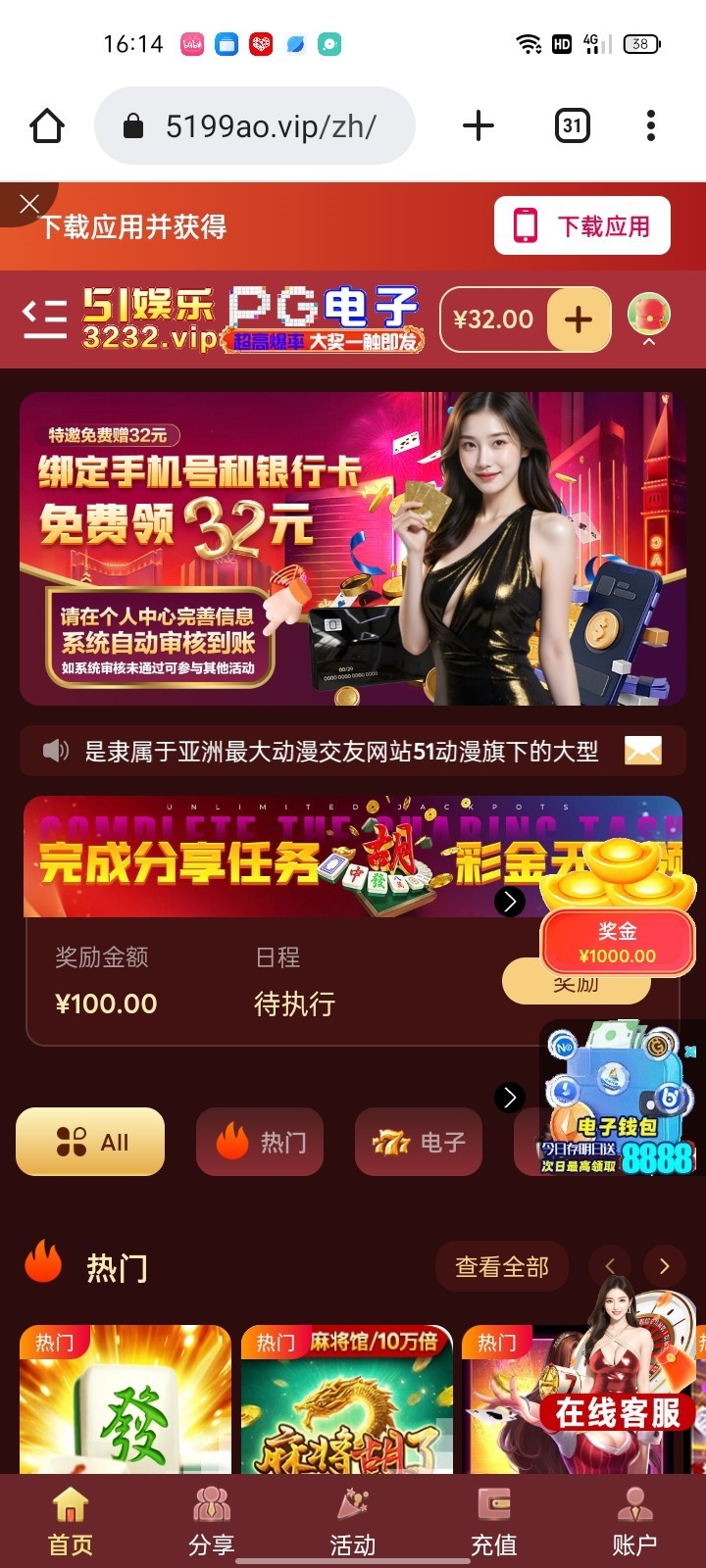 51娱乐特邀送32彩金
