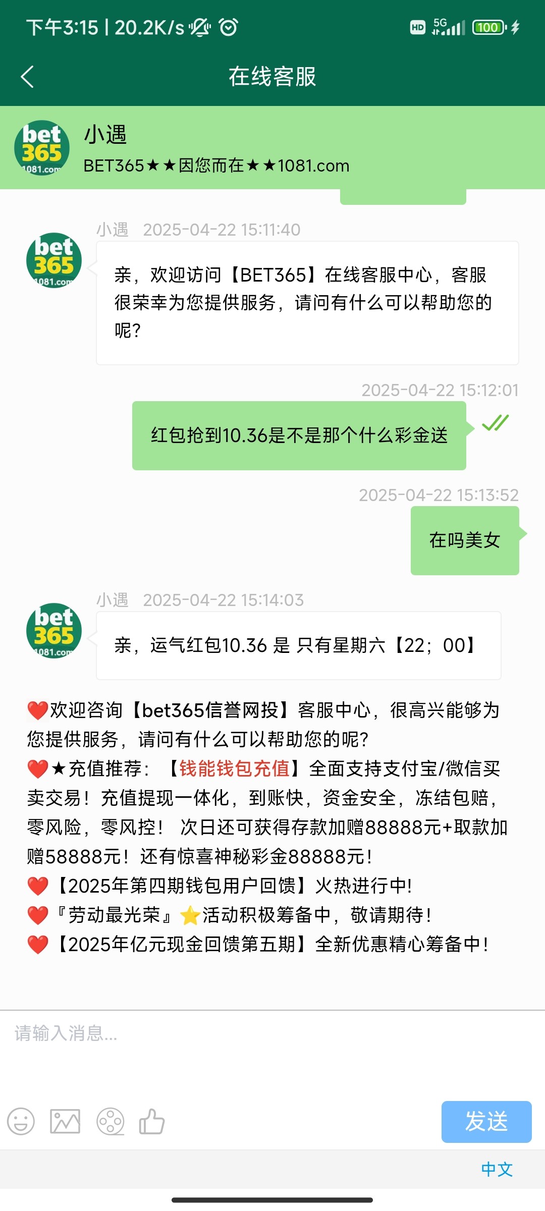 我第一次几点88给了88没打上去,第二次11.11给了1100块提了400一点水没有,第三次11.11申请说活跃度不足不给,我直接开骂,天天充值天天玩说活跃度不够TM的,然后也没给,我就从哪以后不玩这个狗平台了,第四次没充值几次抢到.88也是不给我有开骂,估计想的我好久没玩了就给了,也没打上去,总之这个平台是狗平台,建议大家少在这玩