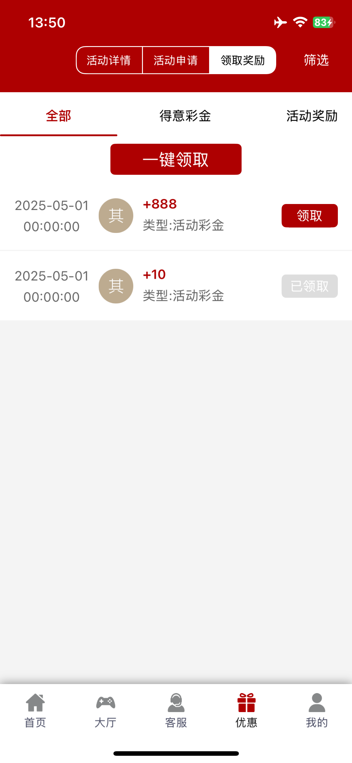 773回馈的彩金到了