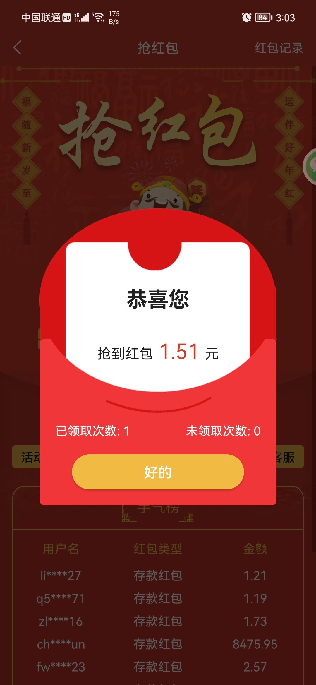 51倍红包抢到了哎