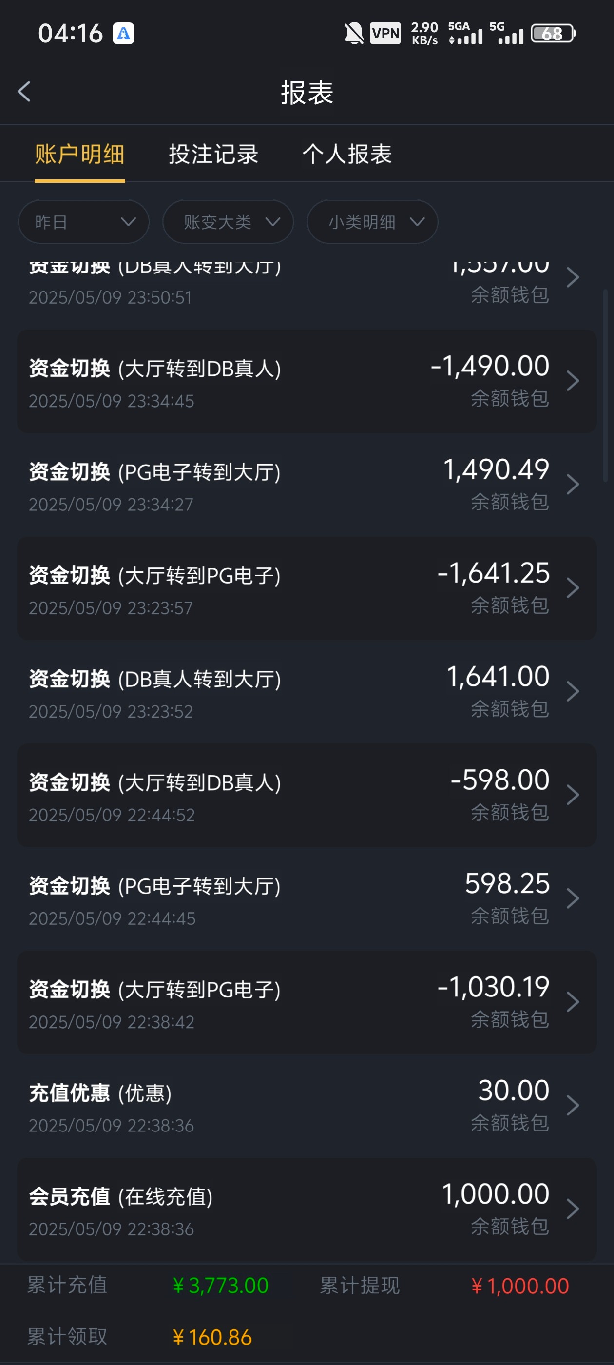 昨天最后上了一千 磨了四个多小时打到3000多提两千不给出 然后说站外对刷扣除盈利 哪个人对刷会冲三千多打将近三万打码 抽水都要抽死