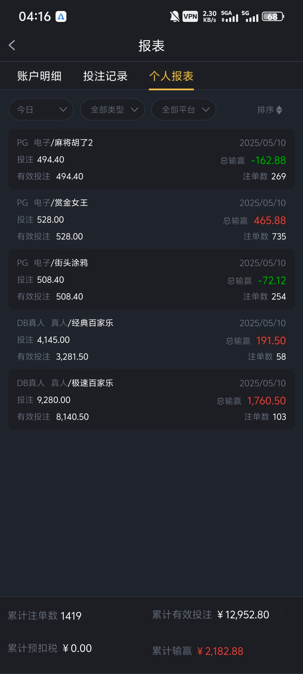 这台我去年第一次玩100赢500就给我扣除盈利退本金了我一分彩金都没领
