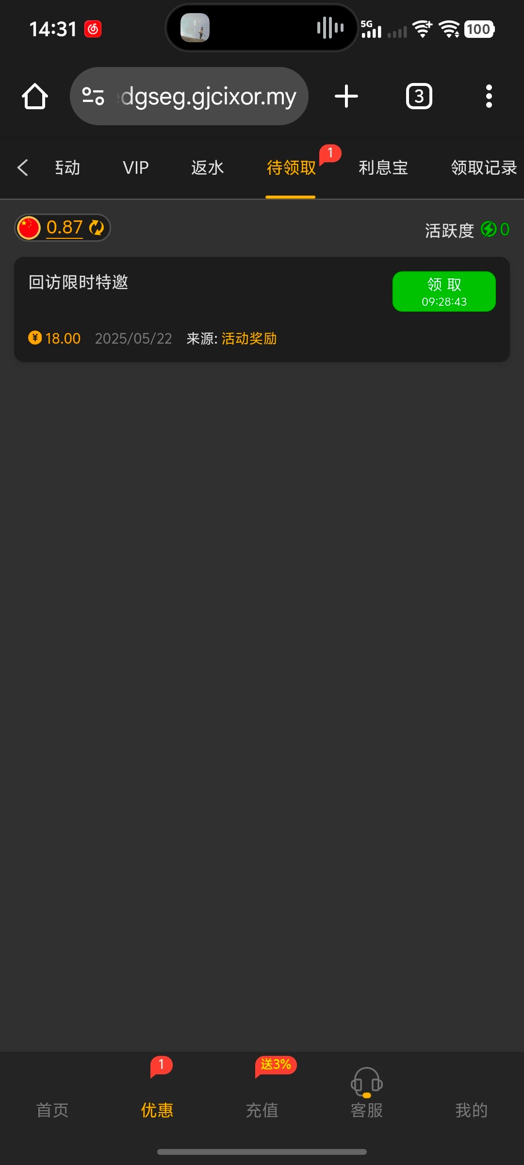 刚注册 充了30试水 给了一次免费2倍