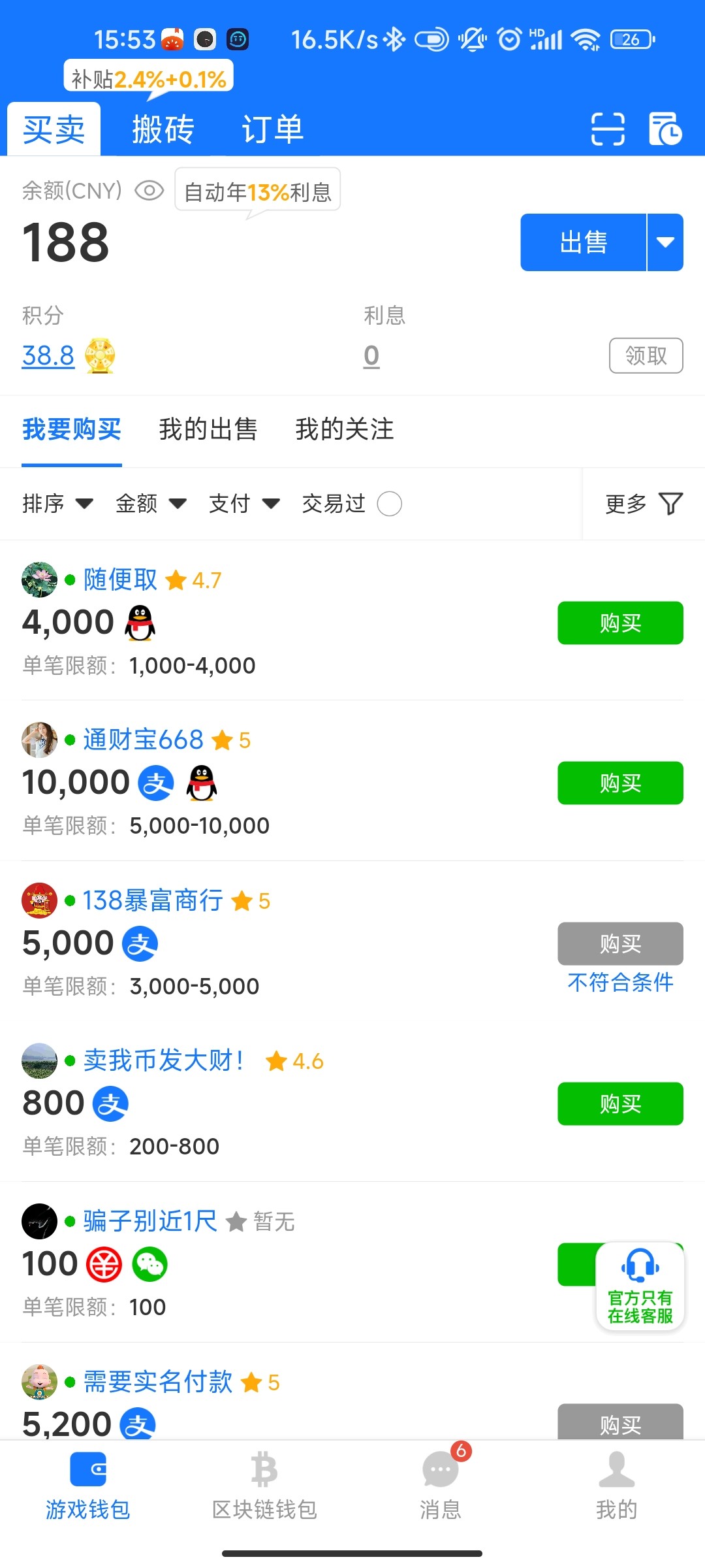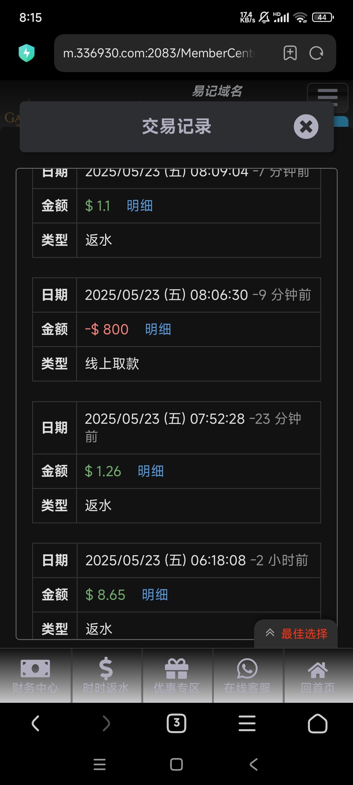 那天回馈25上360扣剩下188然后又冲嘎完 他只能提那个vip钱包半天卖不出去又只能冲回他那个台