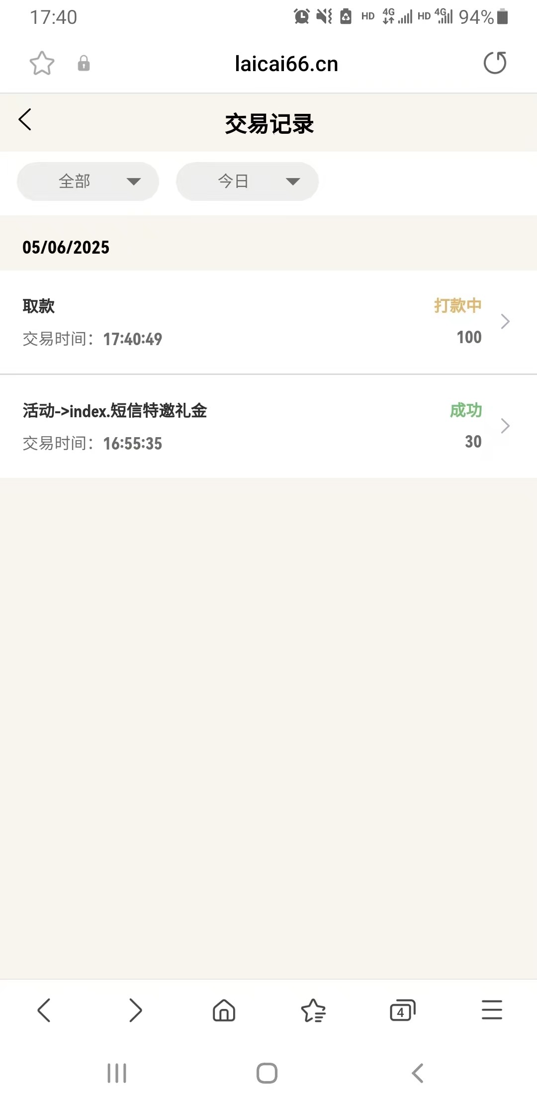 已到账100