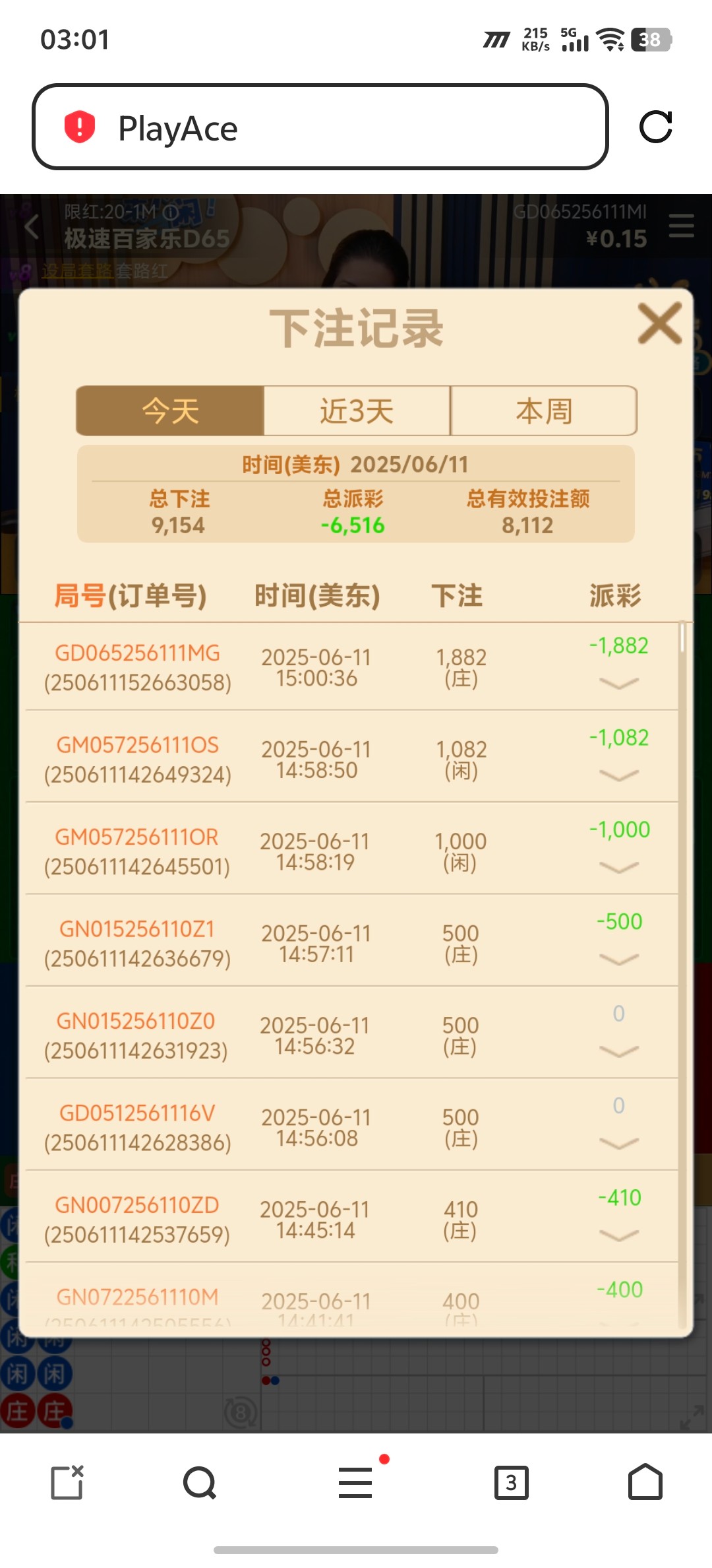 真人这星期就输了五六千。补牌太离谱了。基本都是八输九