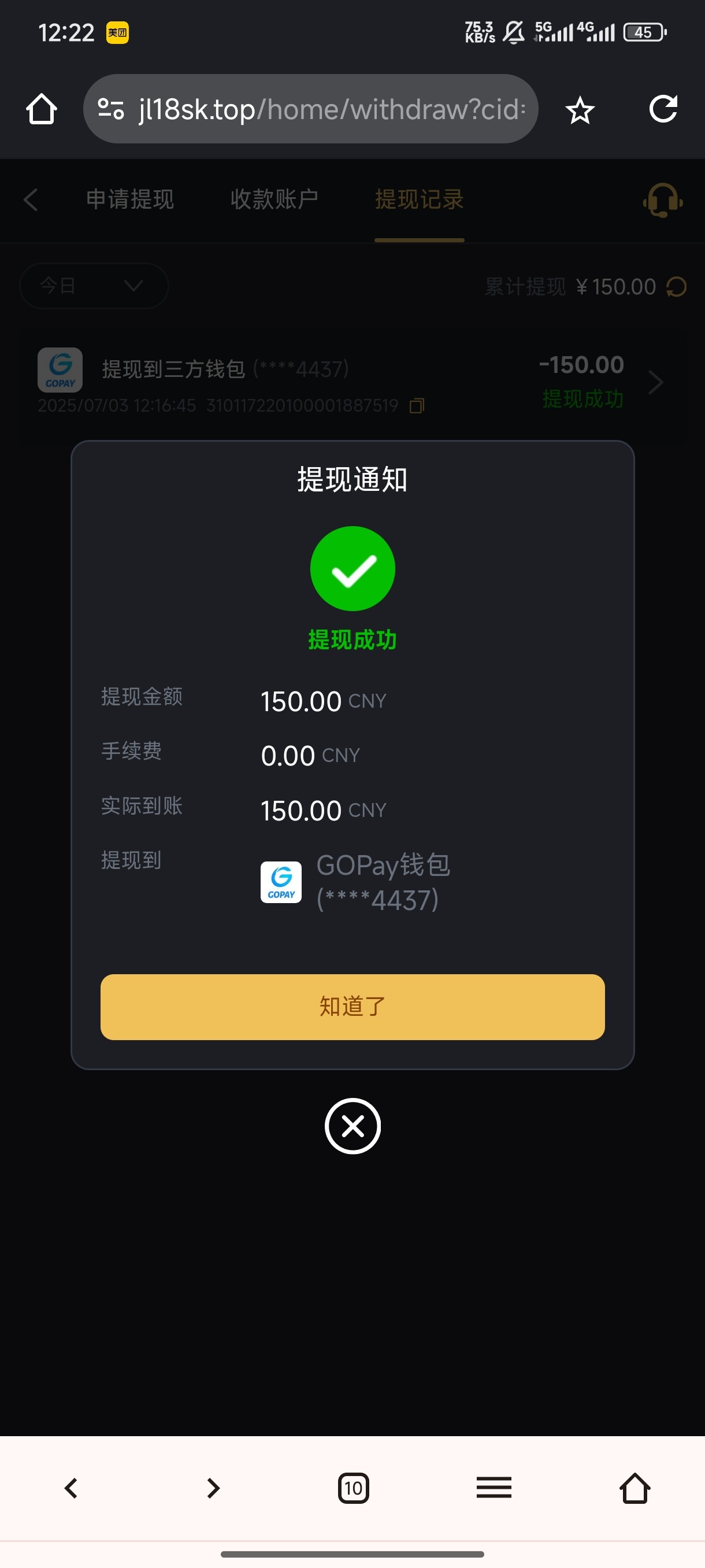 提了150 不知道能不能到