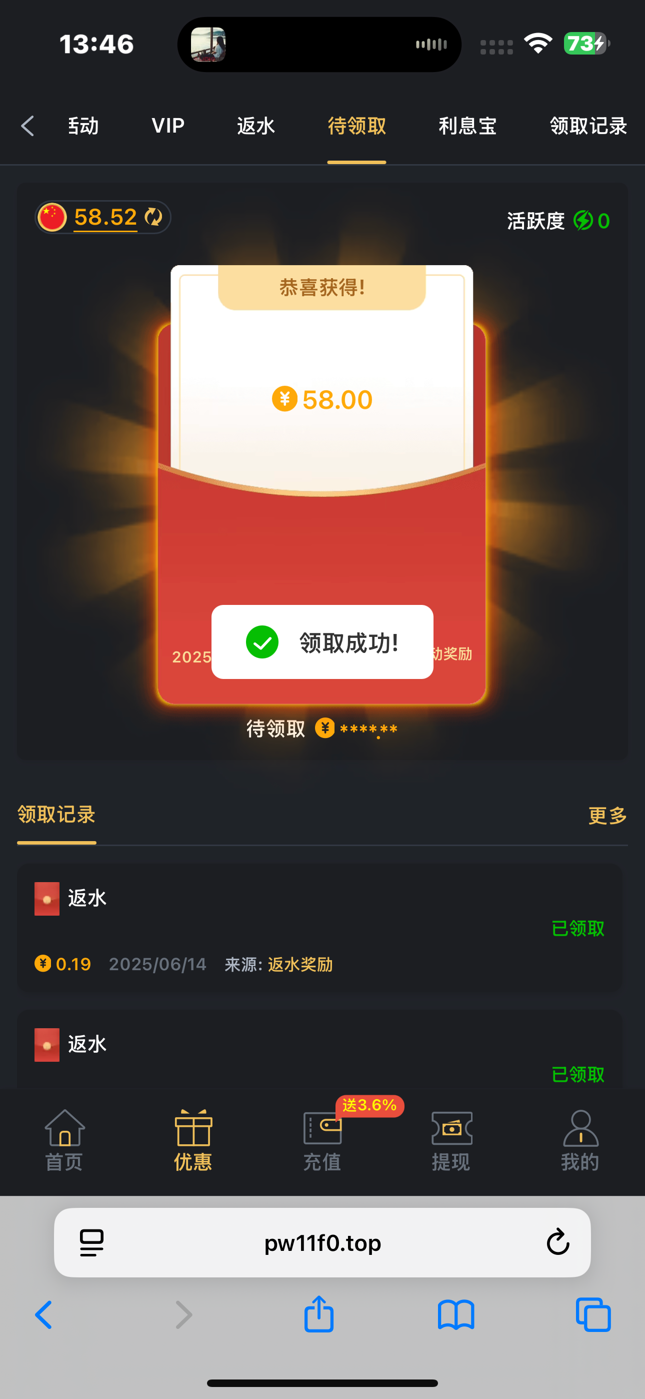领到58