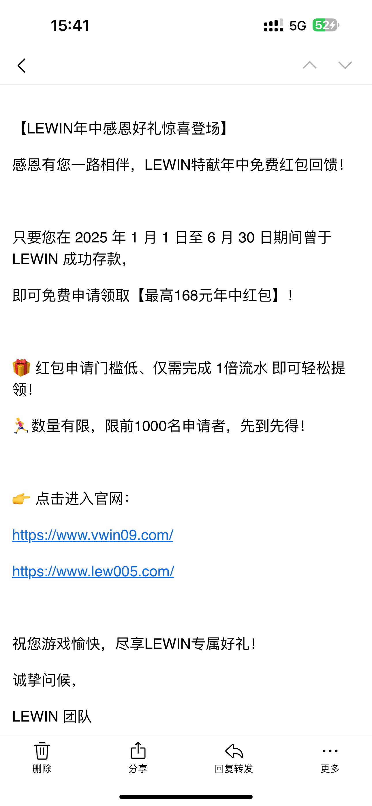 乐赢回馈领取彩金58