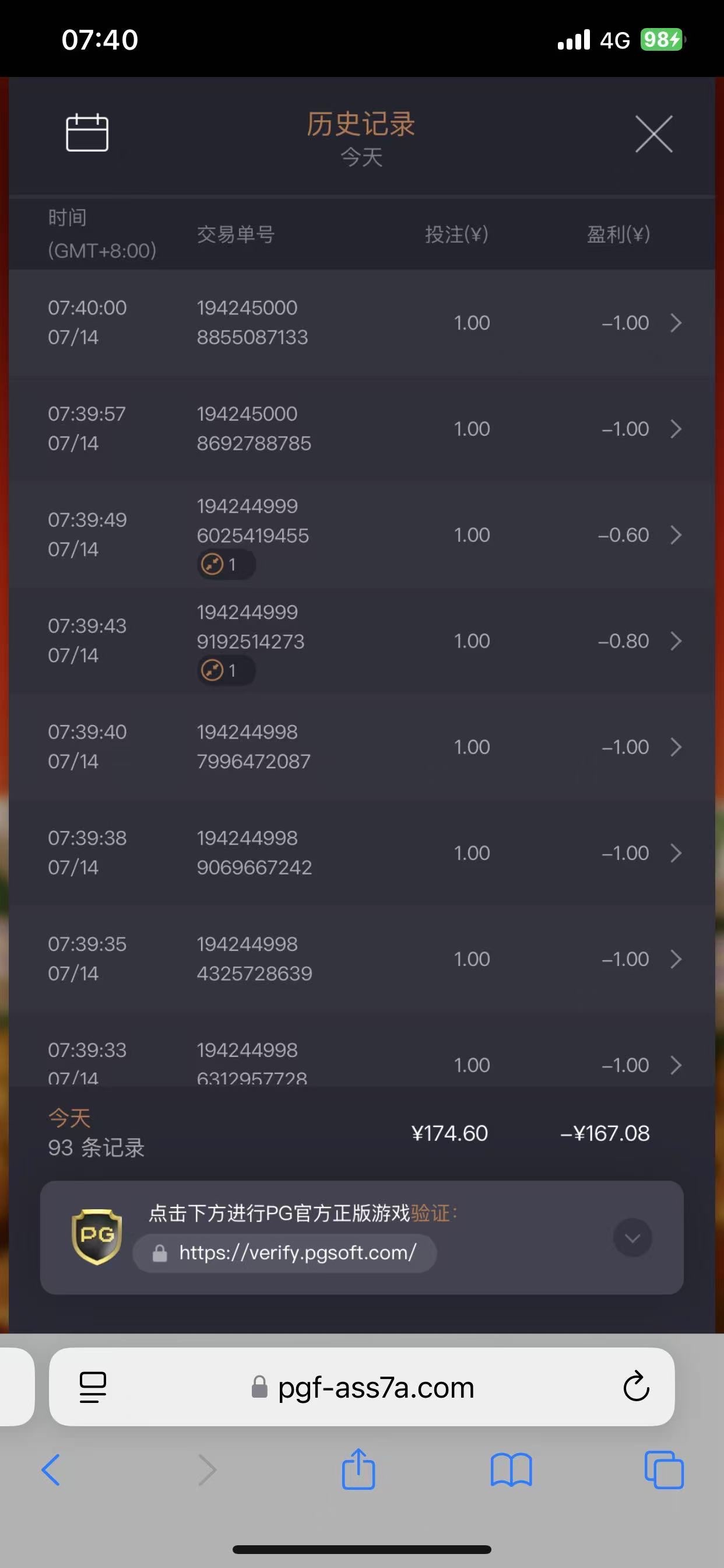 yls666666 你就上一个不到三百还是分平台输不是很正常吗有水你这个玩法也不好赢