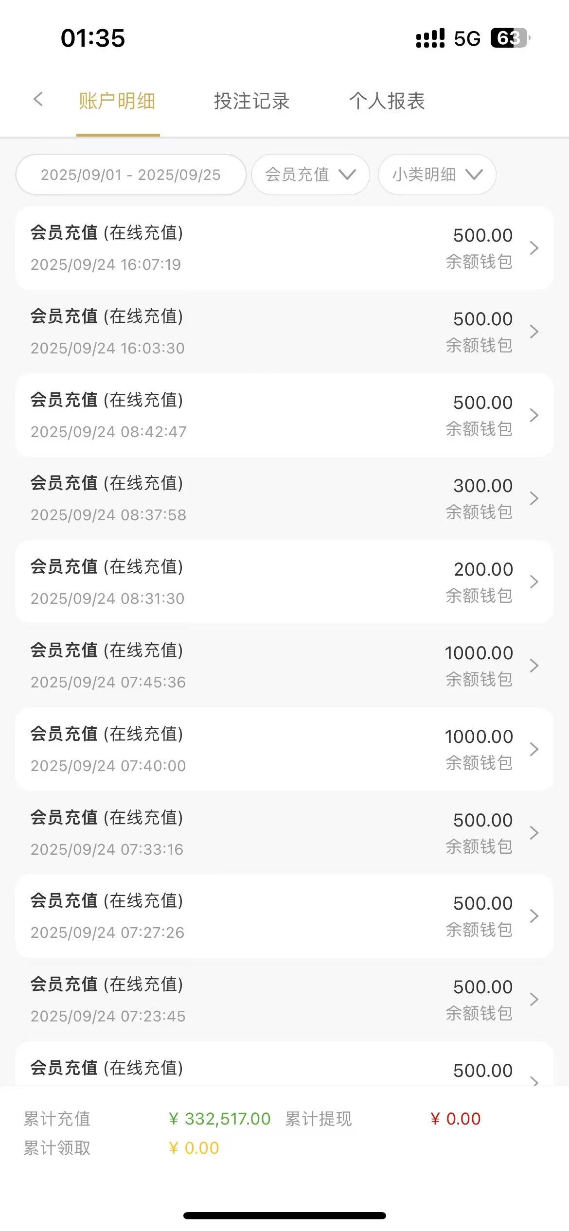 选的充值记录