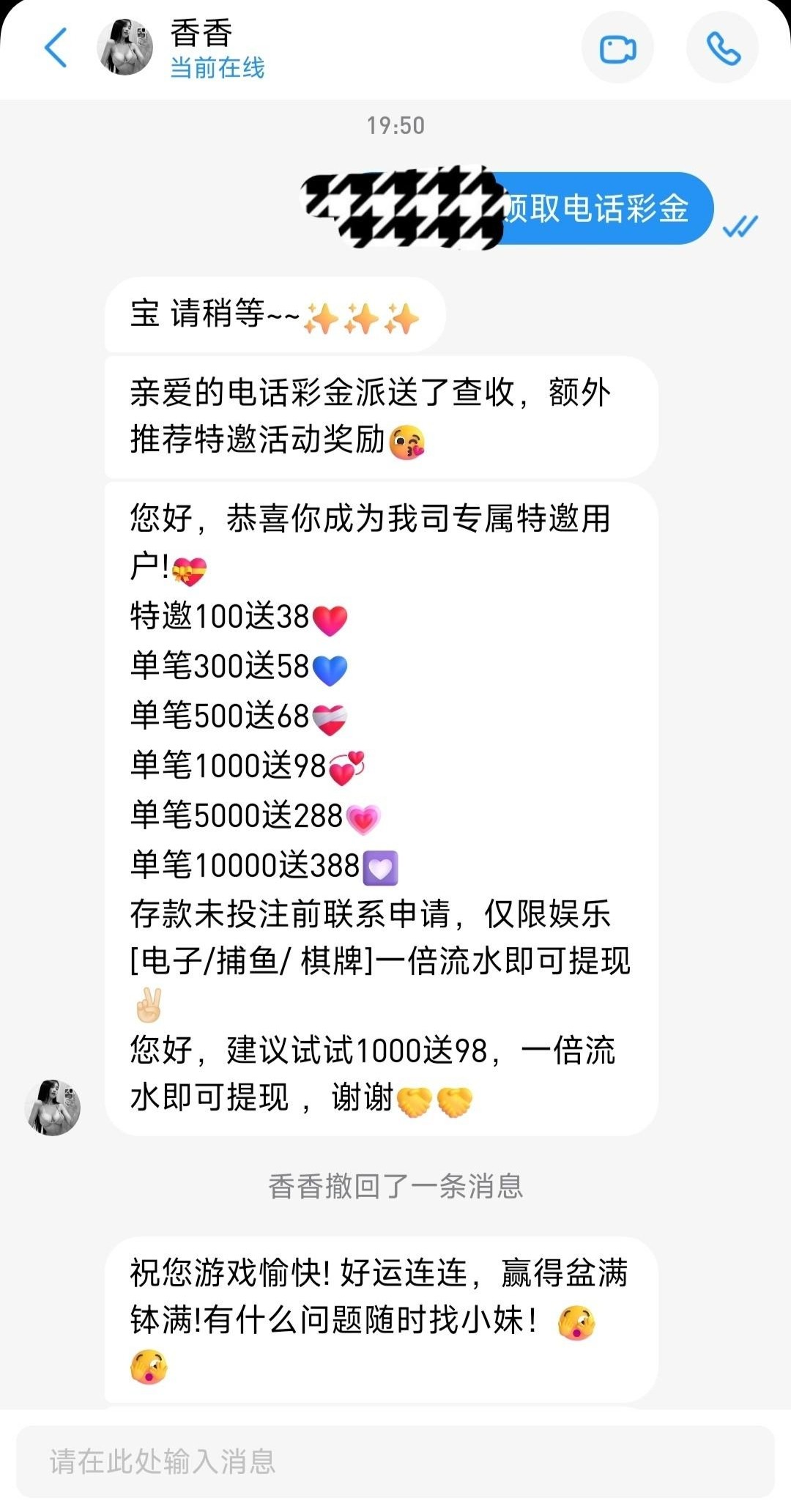 a1487069879 最近这台子我快2个月没体现了,杀的很 偶尔充值玩玩必输,而且卡流水,现在要打3倍流水才让你提现,不然提现的时候一直有个服务费卡在哪里不让你提现,现在黑的要死 最好别玩这个台子了