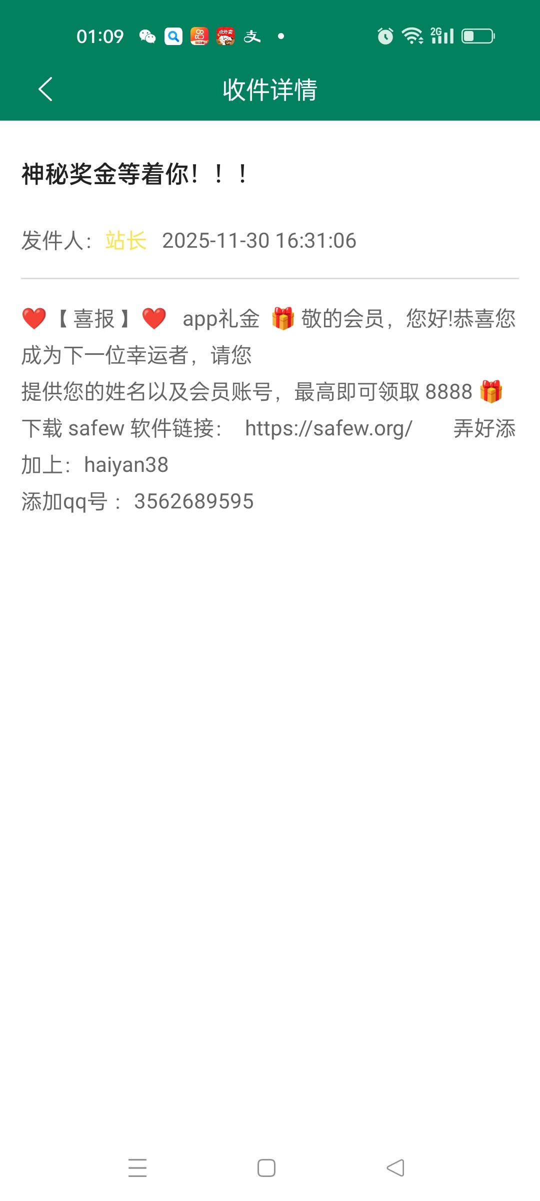 这个应该是碰不到,自己登录看看有没有站内信吧