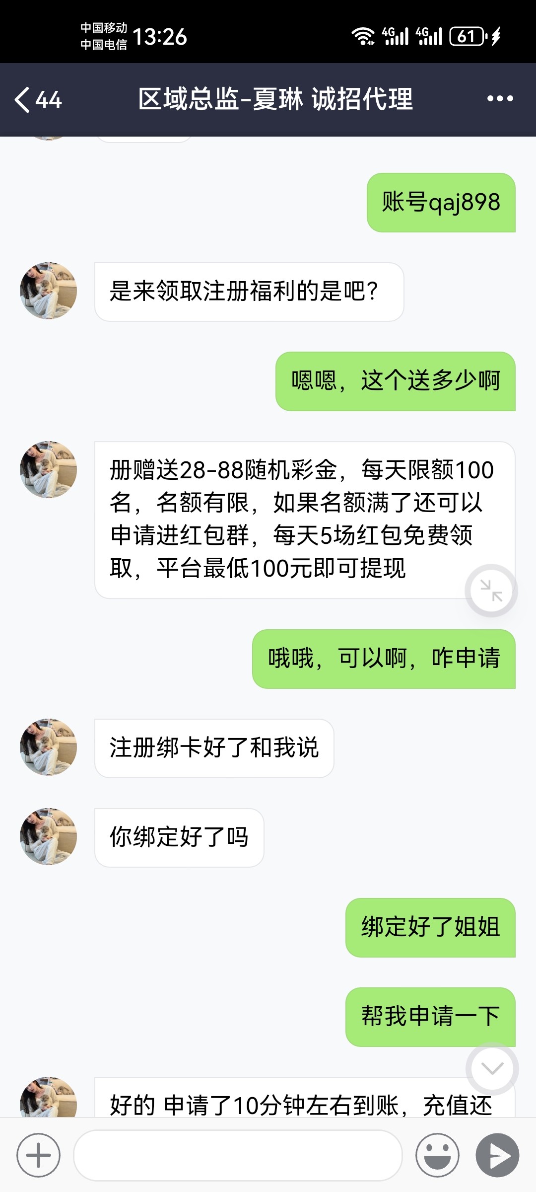 代理给我发的,红包好大,都去抢
