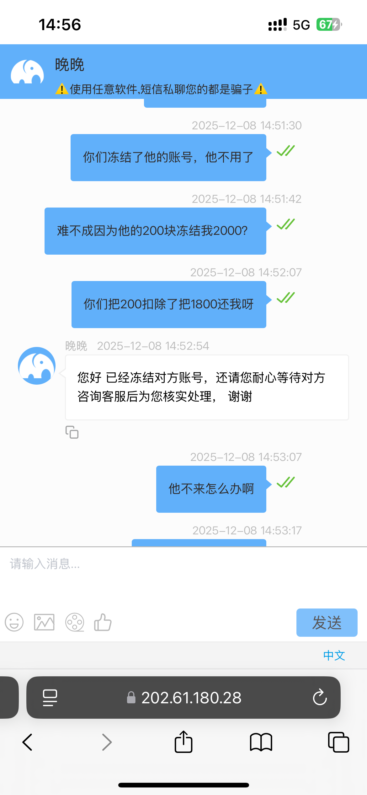 把收到的200给他退回去,截图给客服不就可以了吗