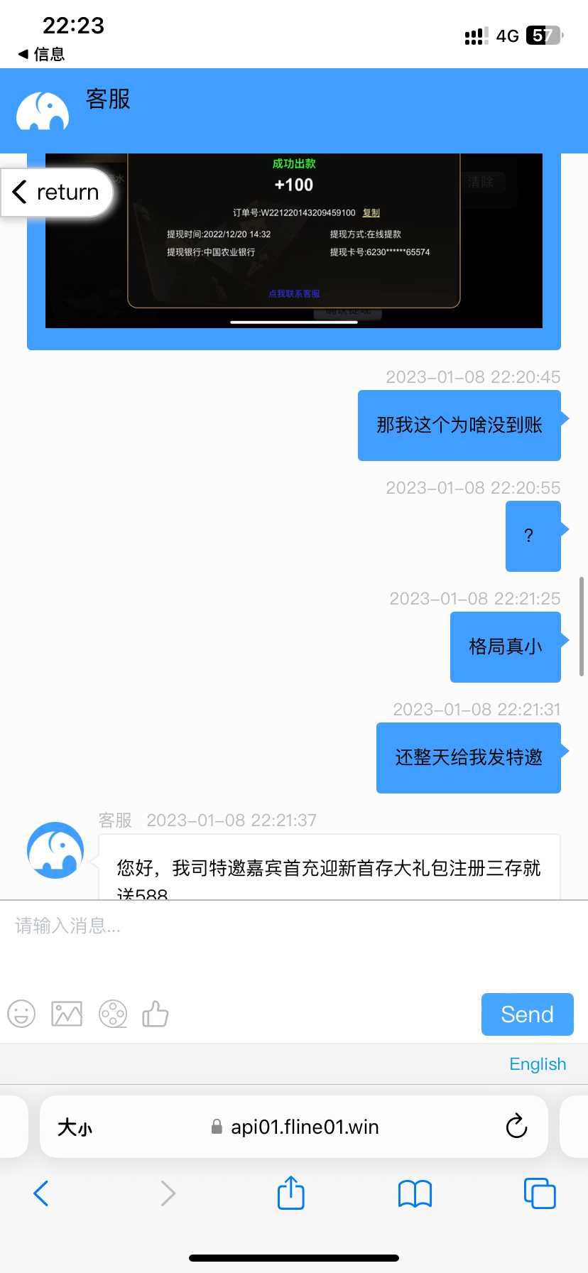 也天天给我发,你是充值没到账,还是提现没到账?