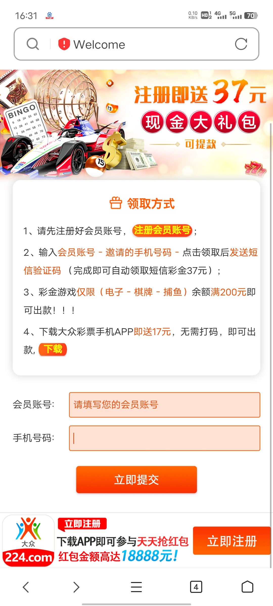 特邀注册送37