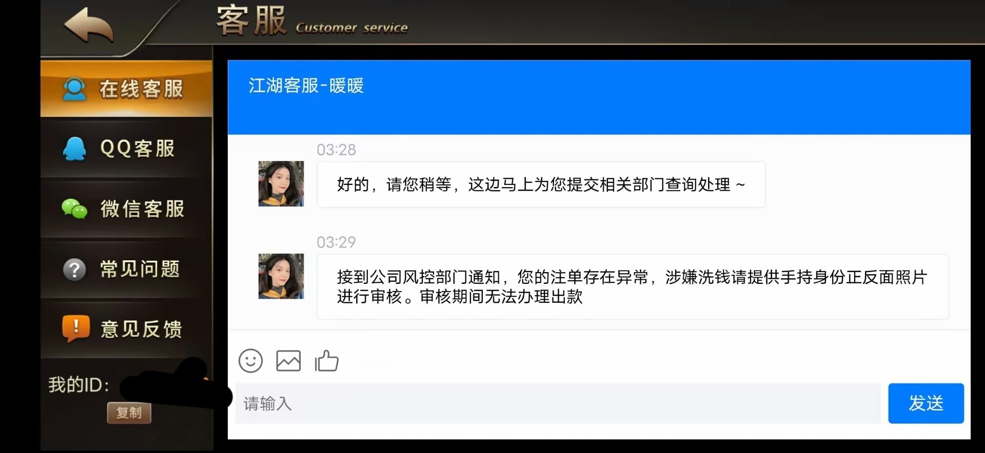 正常充值一千,没申请任何优惠,正常玩,打到两千三提现直接黑款