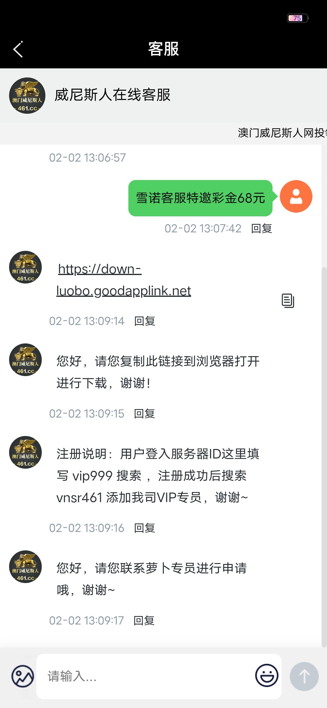 找客服发送 雪诺客服特邀彩金68元