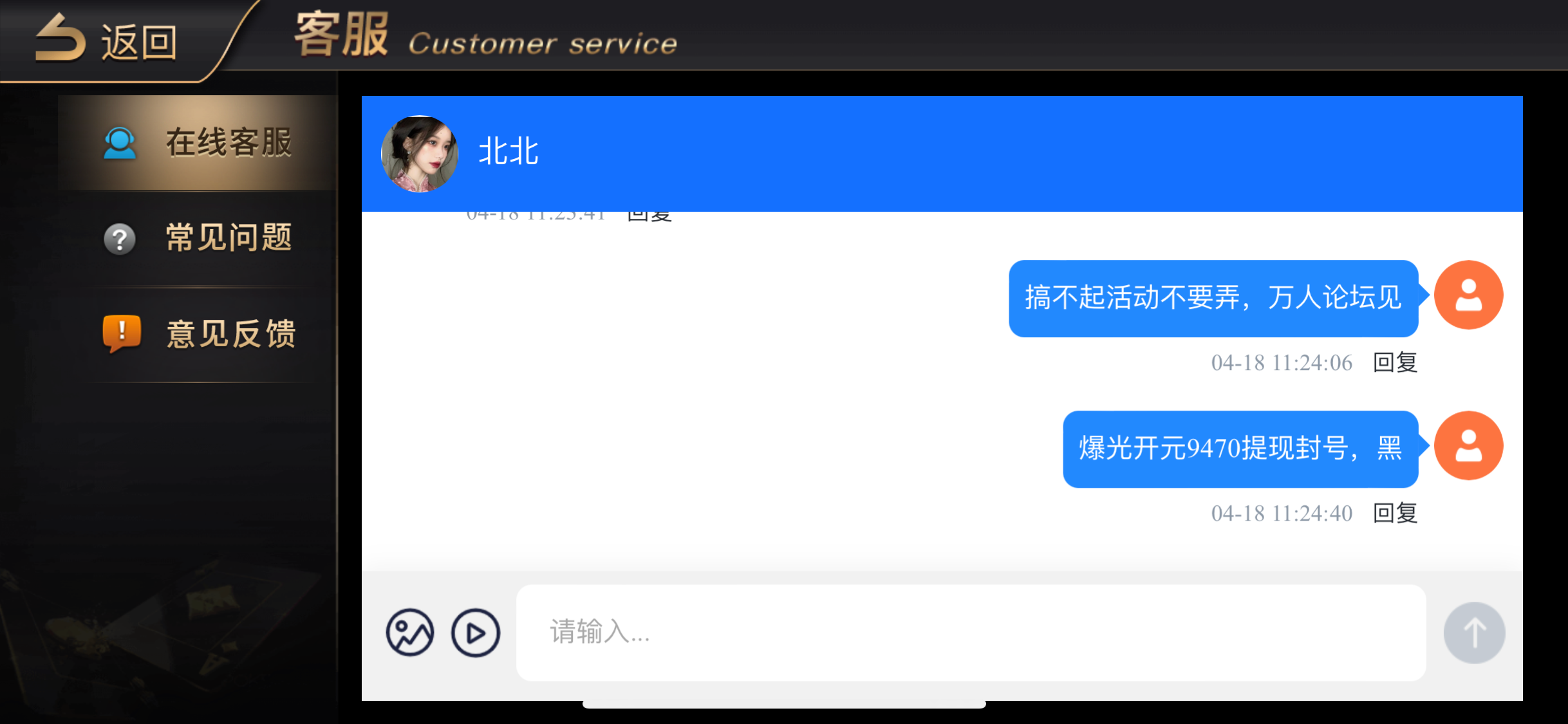 老用户历史存款过的去申请优惠,根据金额去申请,具体自测没充值过的勿充值半黑台子。