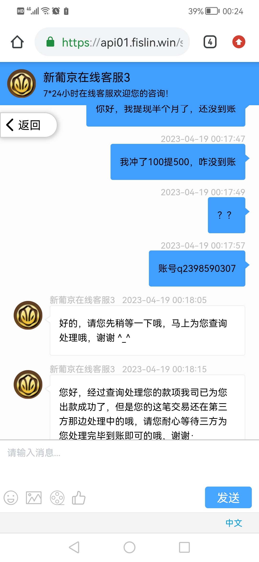 .提现500,一会说出款成功了,,一会说账号异常