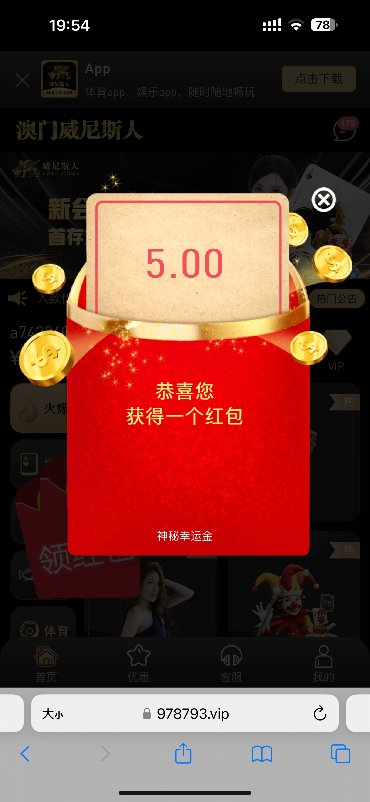 收到短信的有神秘彩金