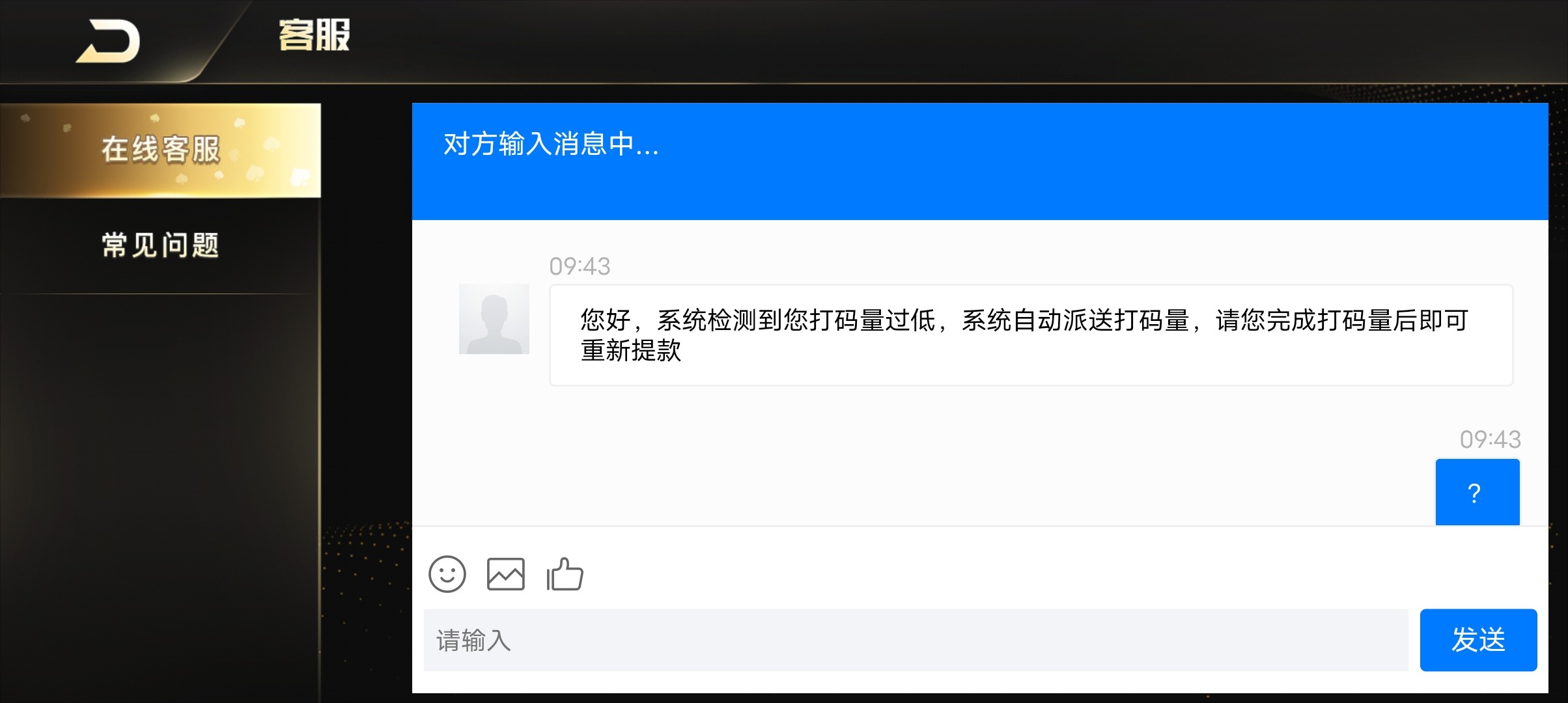 后面我充值300打了1k流水 反手说我多账号要我打六k