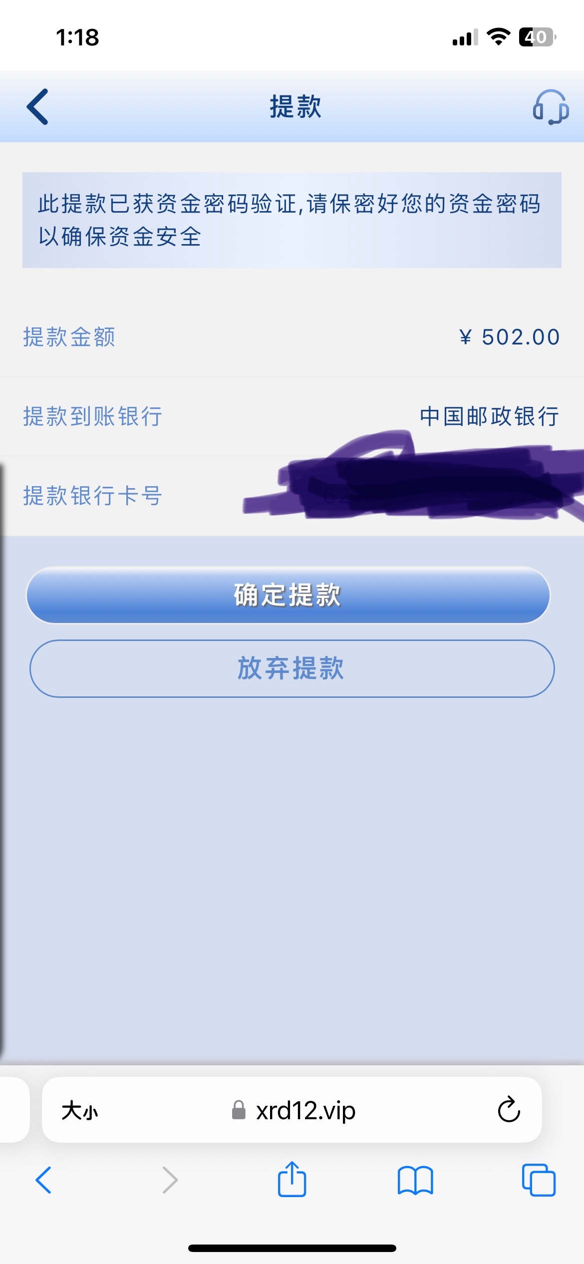 我打到400,提款他妈点快了点了确认了,它显示成功服了