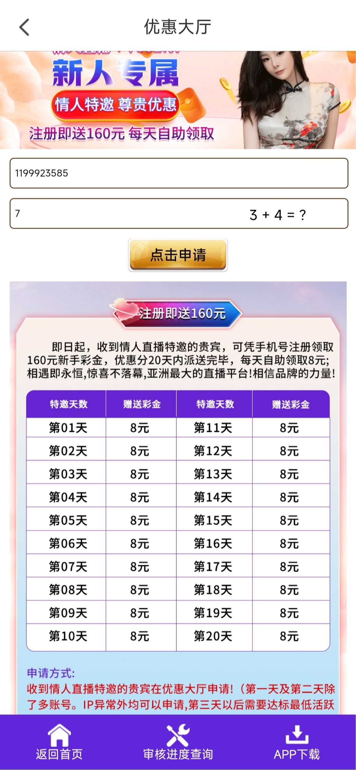 情人直播,送8,连领2天,后续的需要打水,不建议大家充值