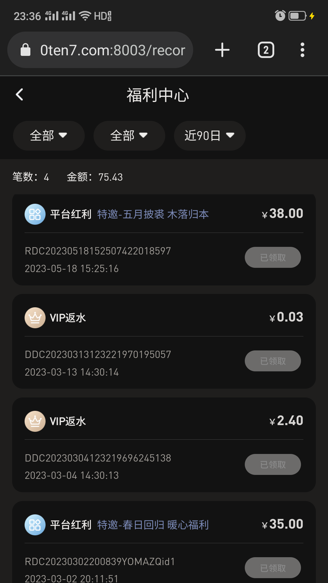 我提过两次到账了